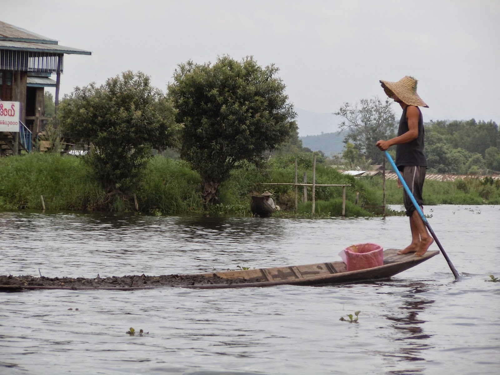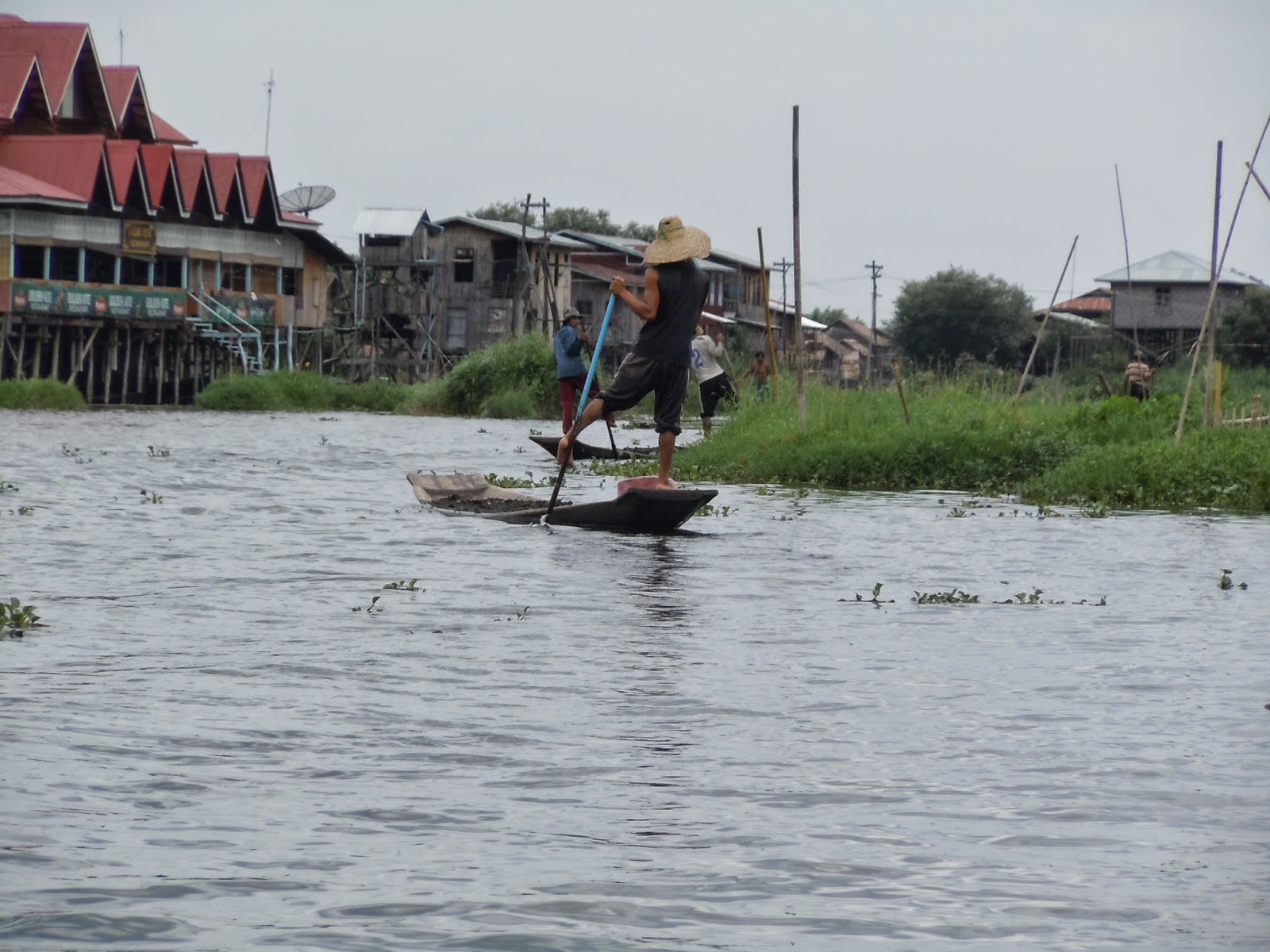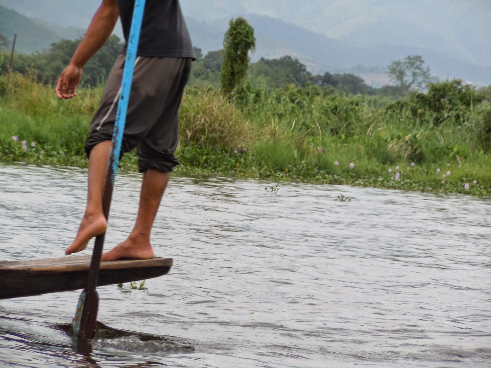 We aren't long in the water before we see the one thing that makes this lake special- the local fishermen have a custom where they row the boat with their legs wrapped around the oar. It looks a little something like this: