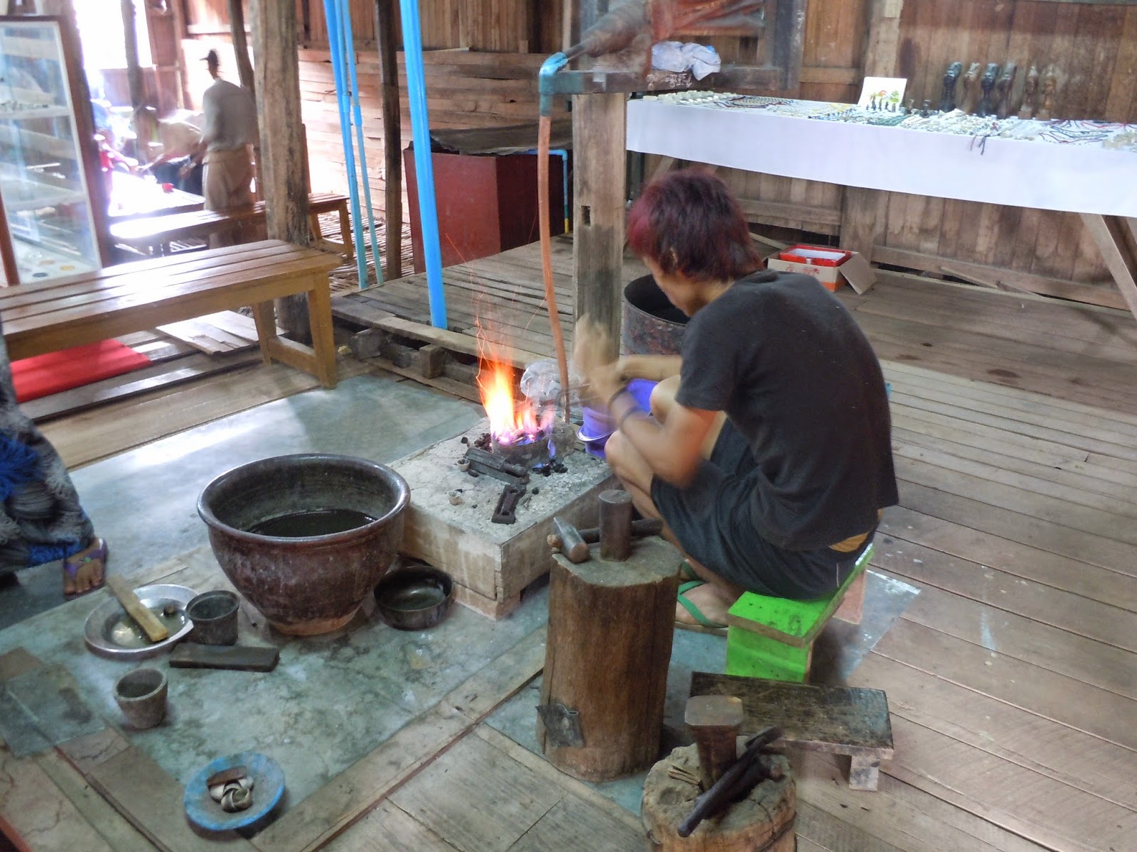 Hell if I know if it's more effective, or even as effective, as any other kind of arm-centric rowing method, but it's kind of neat. Unfortunately, leg-rowing sets the bar a little too high for the rest of the lake. The jewelry workshop is pretty much like every other tourist trap in Thailand that a tuk-tuk driver will insist on taking you to before your destination, except that the building is on stilts. Because it's in a lake. So far, the 4,000 ks I paid for my seat on the boat may not have been the soundest investment.